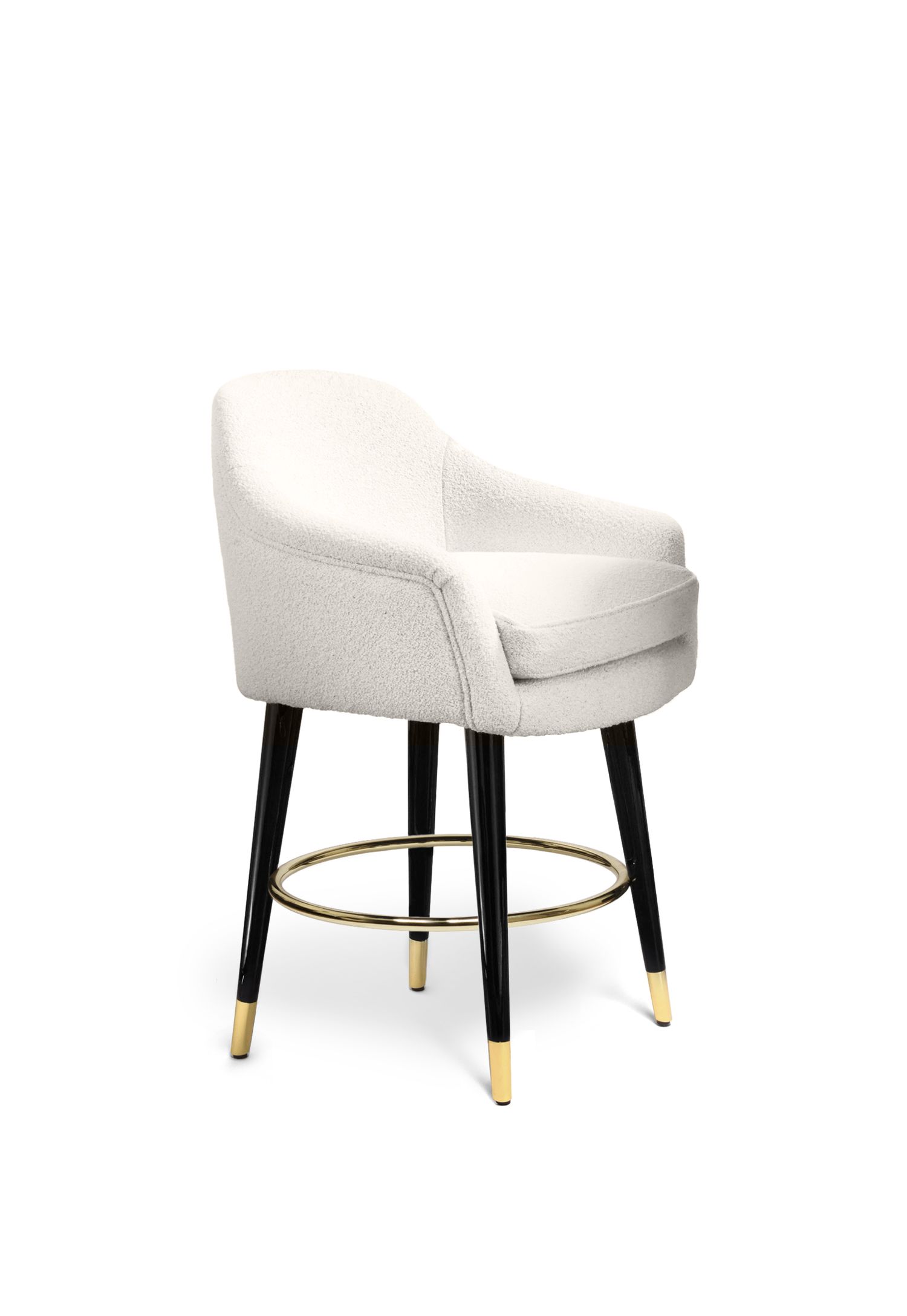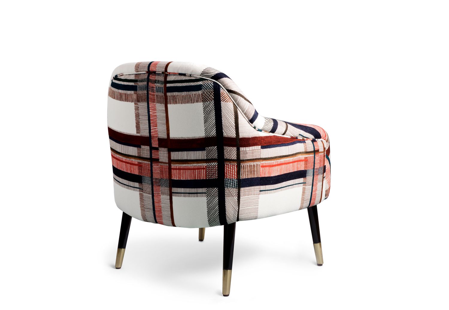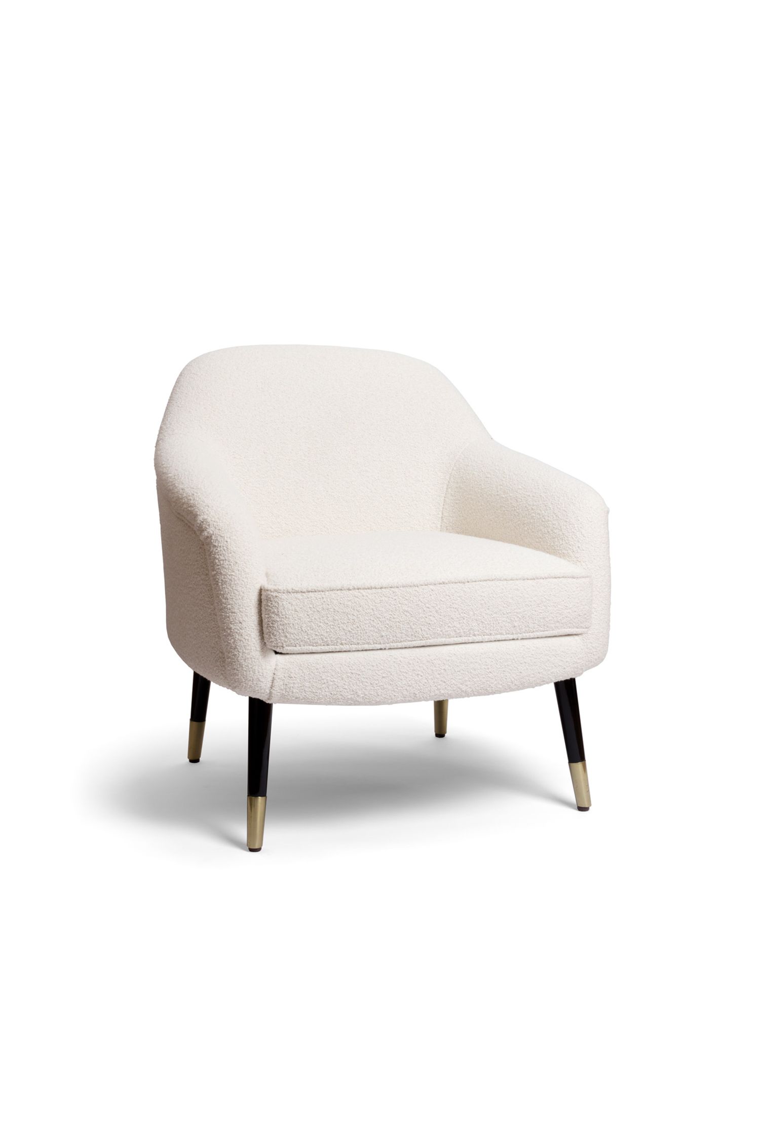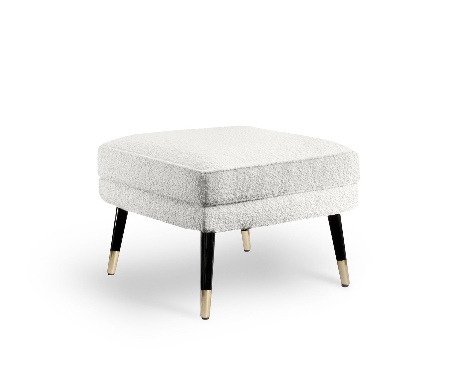 La famiglia di sedute Bernadette include la sedia da pranzo e la panca da pranzo, lo sgabello, il divanetto, la poltroncina e il pouf.