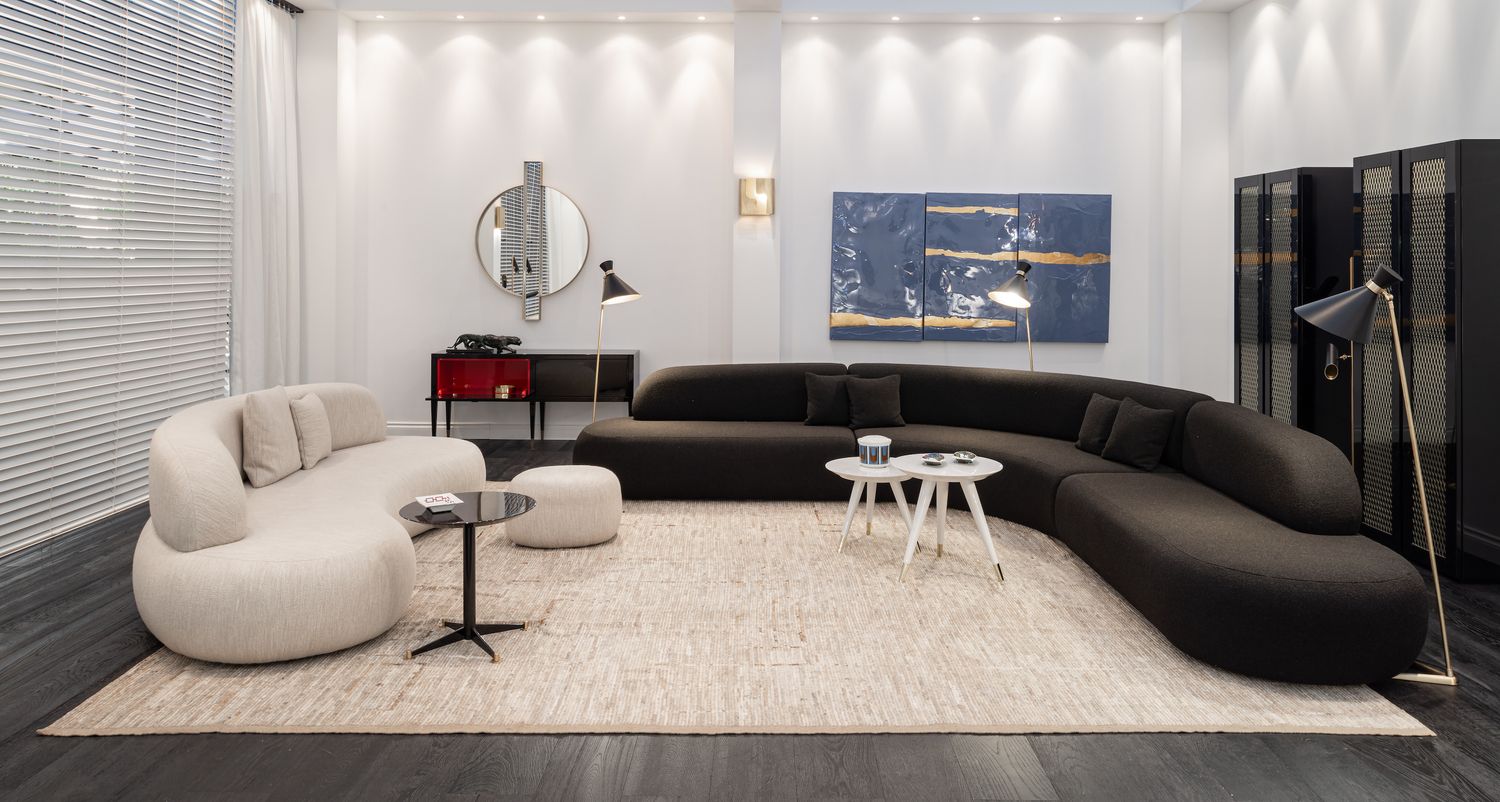 La prima, dedicata alla collezione iconica di DOM Edizioni, una collezione contemporanea, caratterizzata da forme eleganti e materiali di pregio, legni scuri, marmi e raffinati dettagli in metallo.